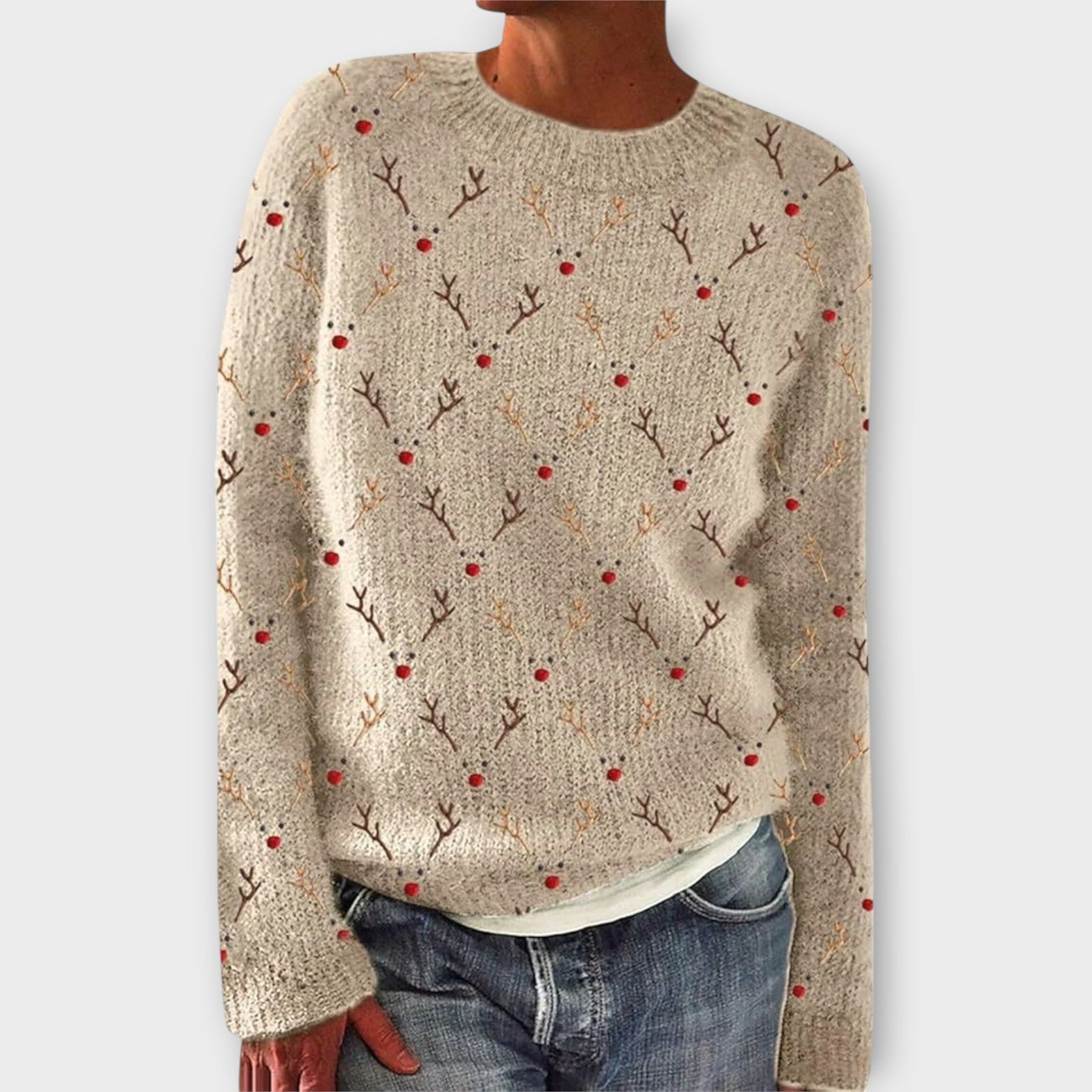Tai žiemos megztinis moterims! Pagamintas iš minkštos, aukštos kokybės medžiagos, šis megztinis suteikia šilumą ir stilių jūsų garderobai. Su savo žaviu žiemos dizainu, jis suteikia patogią išvaizdą ir yra puikus pasirinkimas šaltoms dienoms – tiek darbe, per kalėdines pirkinių sesijas, tiek laisvalaikiu.